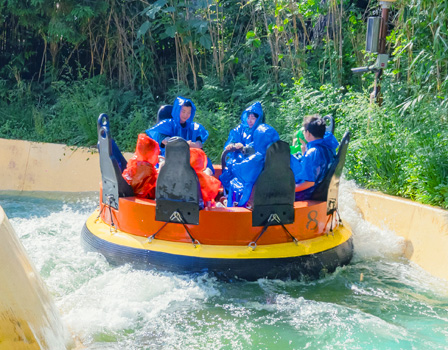 가파른 수로를 따라 아찔한 급류타기! 통나무배를 타고 떠나는 모험과 스릴! 물보라의 시원함과 계곡 물살을 느껴보세요!