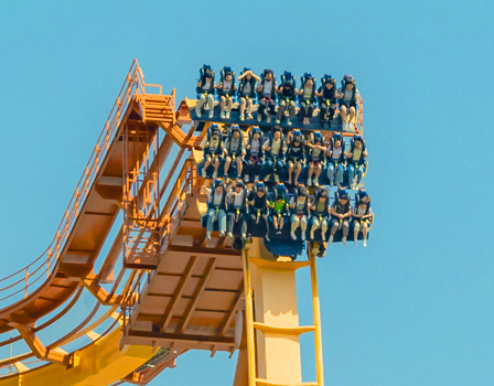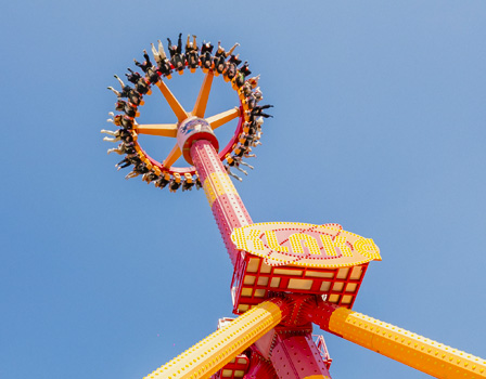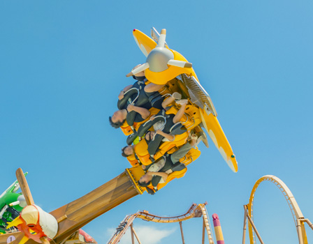 360도 회전하는 메가톤급 스릴 라이드! 거칠게 좌우로 몰아치다가 거꾸로 매달리는 아찔한 스릴을 느껴보세요!