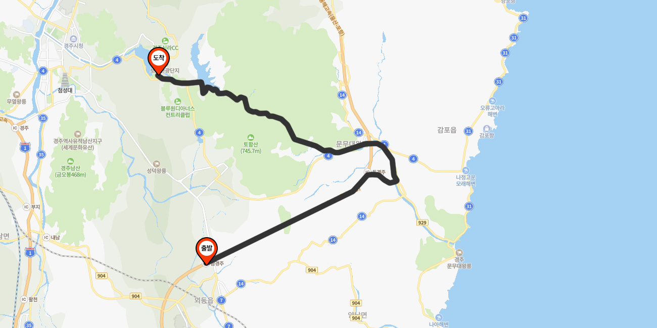 [일반]16(시외버스,고속버스터미널) 승차 후, 경주월드, 캘리포니아비치 정류장에서 하차 →