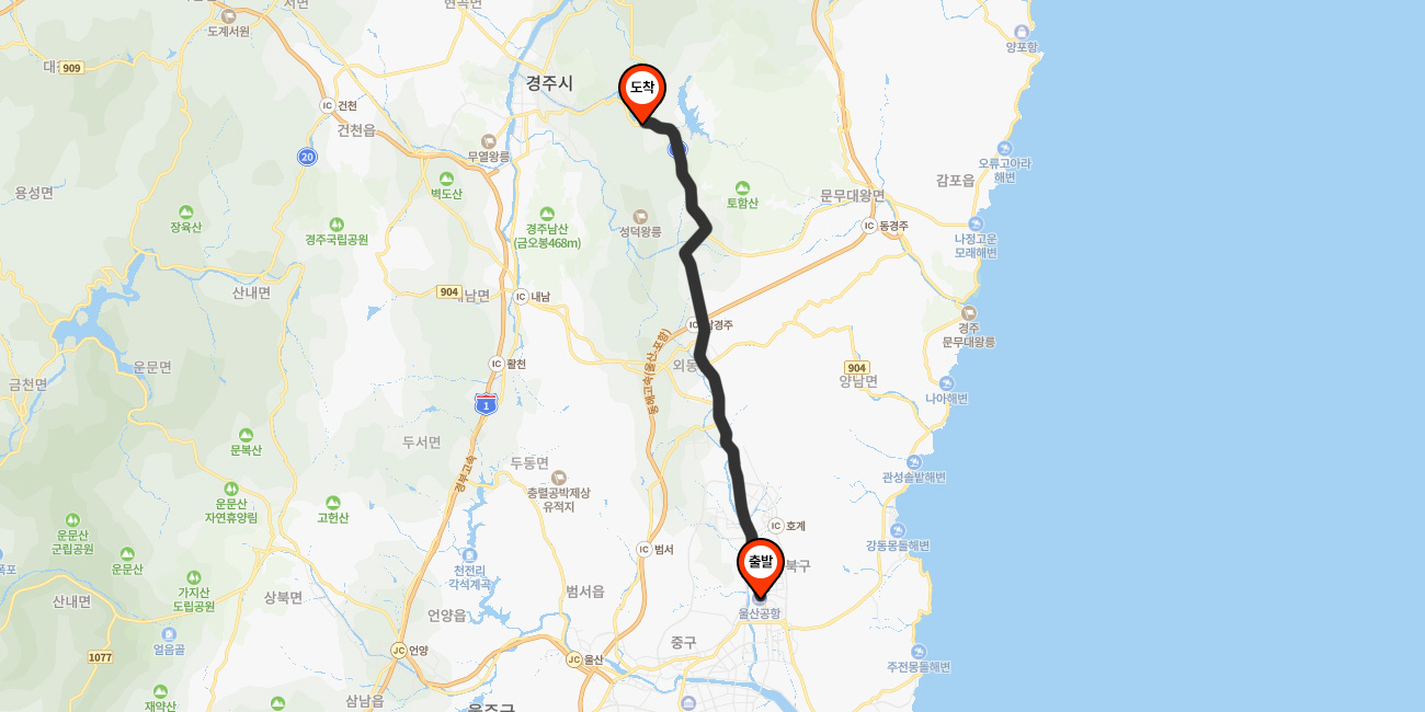 [좌석]18(시외버스,고속버스터미널) 승차 후, 경주월드, 캘리포니아비치 정류장에서 하차 →